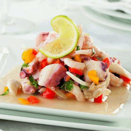 This Is Our #1 Salad Consisting of Jumbo Shrimp, Chunks of Maine Lobster, fresh poached tender Squid, & Baby Octopus with A Delicious Lemony Vinaigrette.